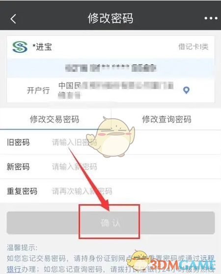 5、进入交易密码修改界面,输入密码后,点击“确认”就完成操作了。具体界面展示如下: