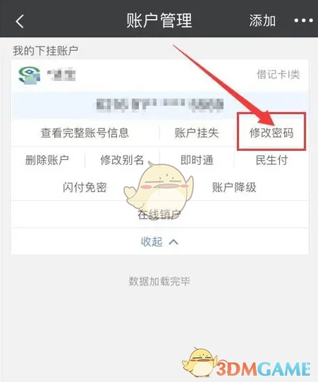 4、进入账户管理界面,点击“修改密码”,图示如下: