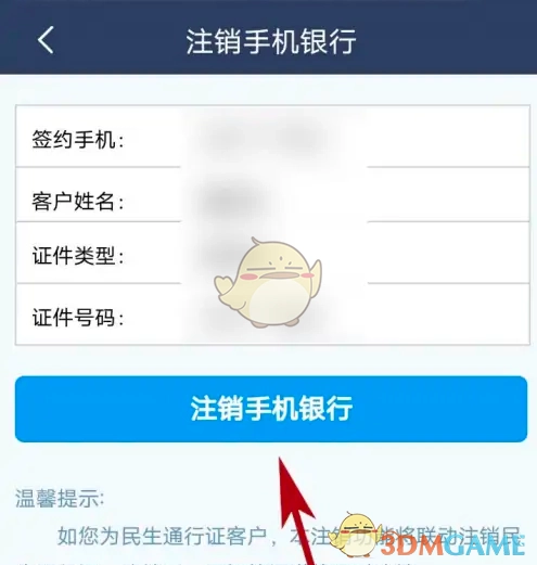 4、页面再次跳转后,确认好需注销账号的信息,点击下方的“注销手机银行”按钮。