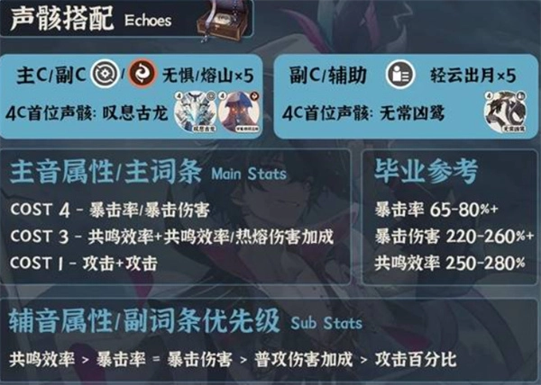 行进序曲(若未持有5星武器):倘若没有专属武器,可尝试将共鸣效率提升至250% - 280%区间,以此保证声骸套装能获得完整加成。