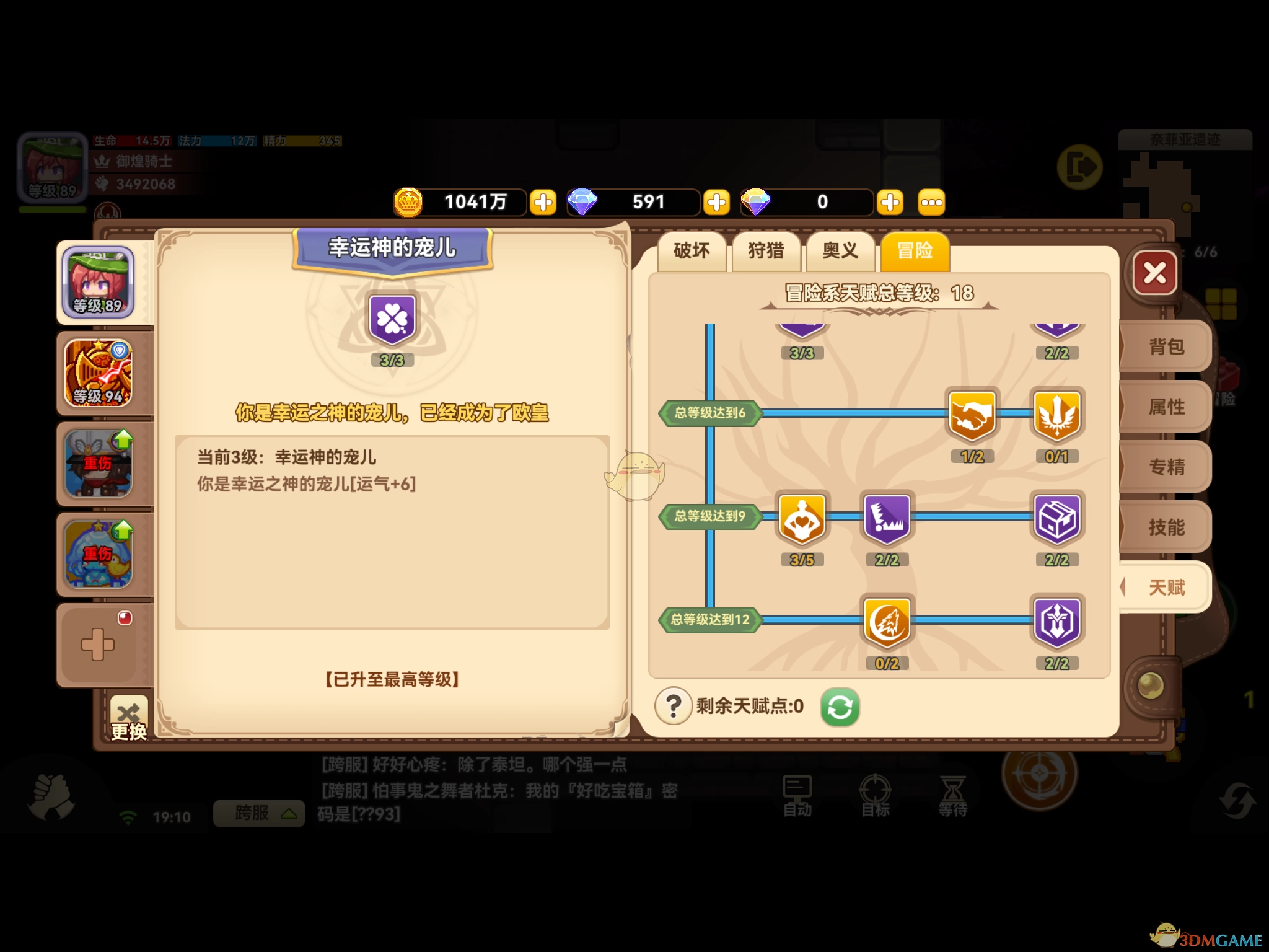 游戏开局时,职业选定为猎人,种族则选地精(原因是地精有心眼专精)。等角色达到特定地位等级后,可进行重生,重生后的组合为猎人加小妖精,小妖精会随着等级提升增加全部耐性,这样能让角色获得更好的生存能力。