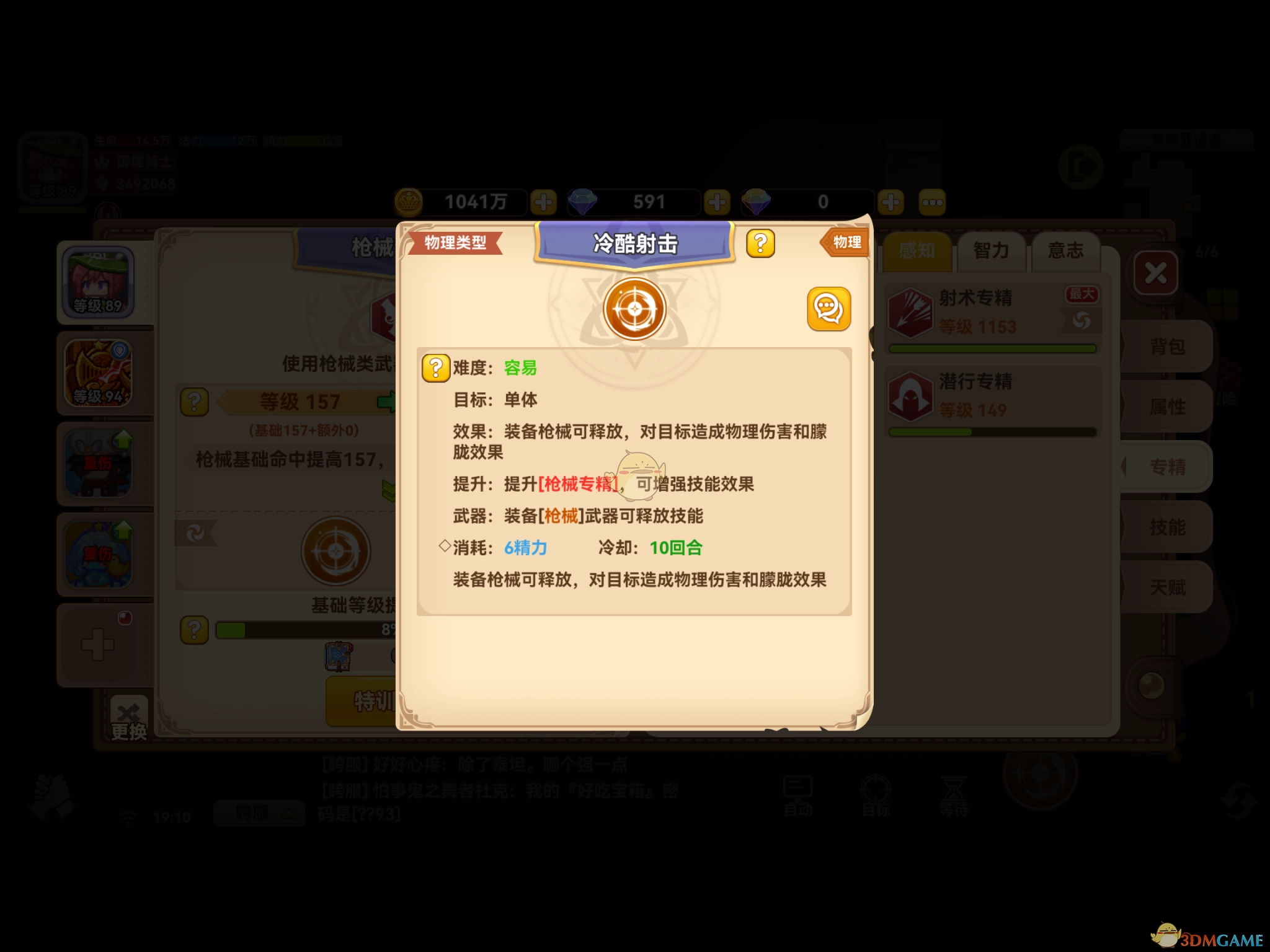 优先将枪械专精提升至五级,此时会解锁冷酷射击技能。该技能适用于所有职业,只要携带枪械类远程武器即可使用。对于并非完全免疫异常状态的怪物,一旦被冷酷射击命中,就会原地罚站。
