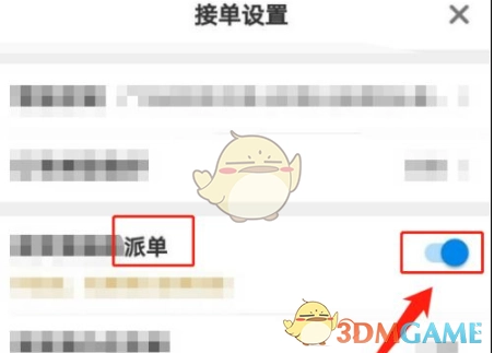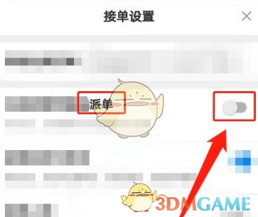 3、来到接单设置页面,点击【派单】右边的按钮。