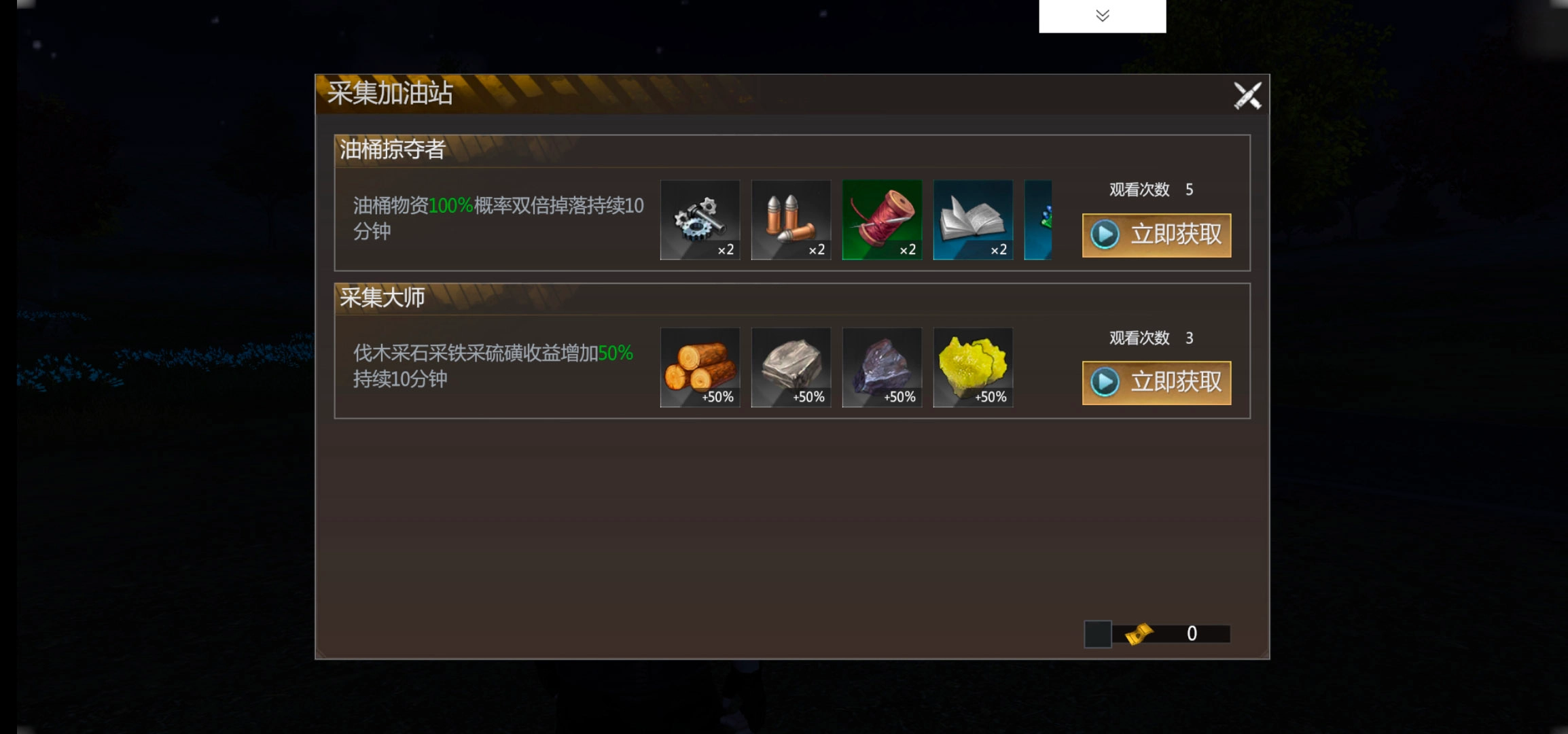 7、在页面右上角找到活动入口,观看3秒【操作指南】,即可获取物资奖励并享受采集加成。