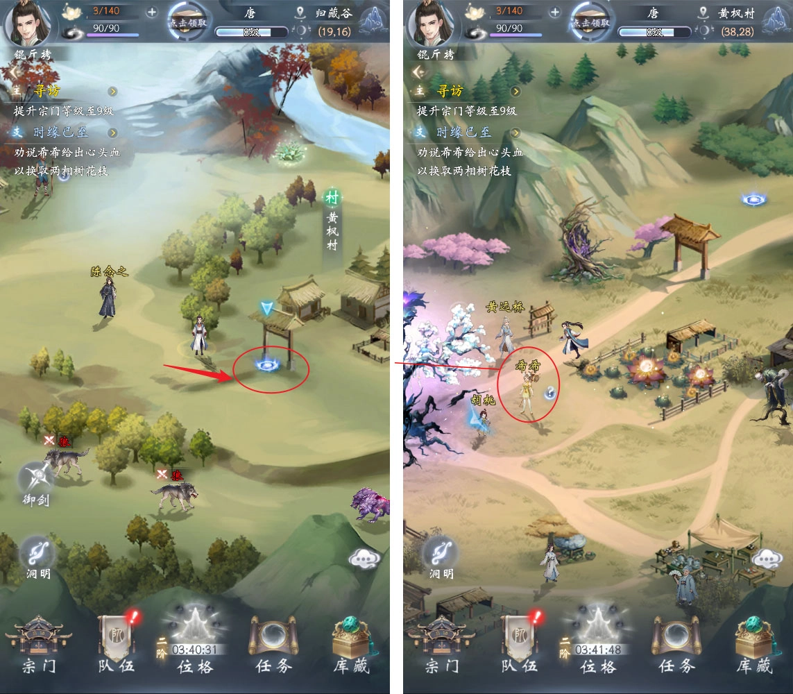 第一步,我们去往归藏谷,经由传送入口抵达黄枫村,而后找到希希。