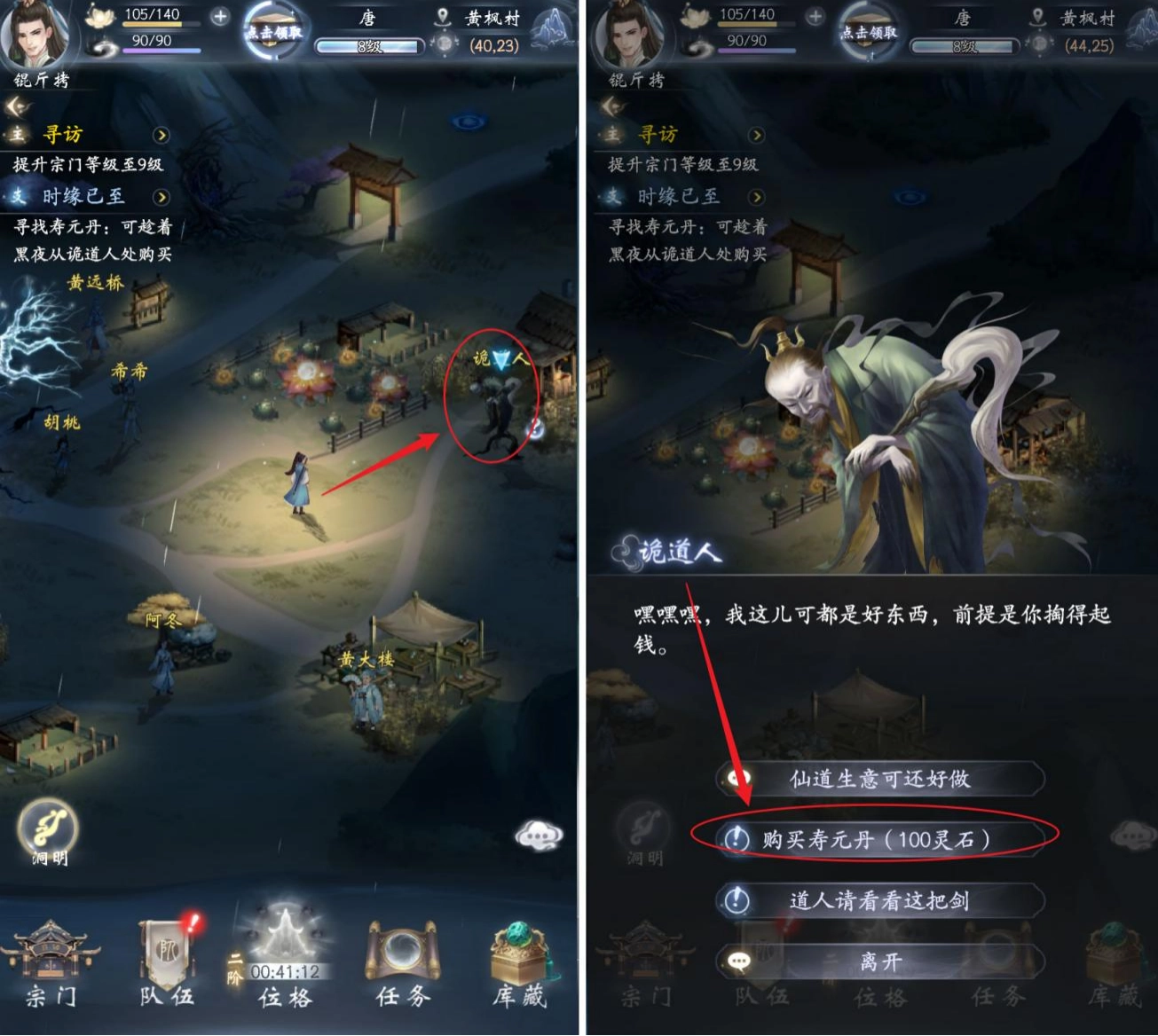移动至归藏谷(46,12)处,可以触发对话,击败丧元。