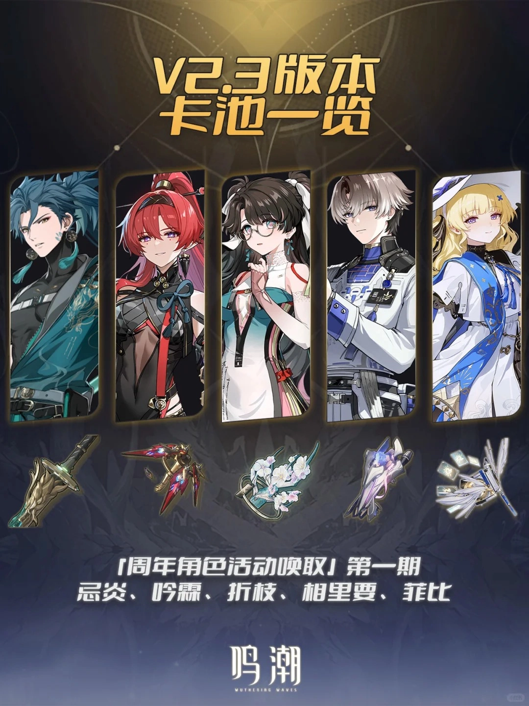专武推荐:折枝专武(泛用)、吟霖专武,其余根据角色需求选择。