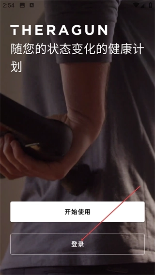 1、打开【THERAGUN】应用后,点击界面上的【登录】按钮即可进入账号操作页面,这款应用能够提供根据用户状态变化而调整的健康计划服务。