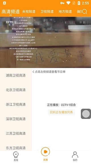 2、在直播部分,提供了很多频道,用户可以选择上面的高清频道,直播类,然后选择下面的特定频道观看。