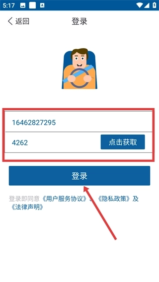 4、进入【登录】页面,在输入框中填写手机号,点击【点击获取】按钮来获取验证码,将验证码填入后点击【登录】按钮,即可完成登录操作。