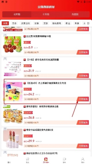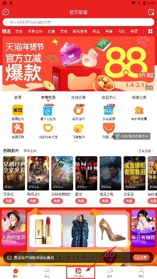 2、进入主界面后,可借助顶部的分类标签(例如“美食”“家居日用”)来切换商品类别。