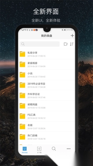 微盘是一款能轻松实现手机文件云端存储的最新免费安卓网盘应用,帮助文件较多的用户通过上传各类文件、照片和视频释放手机存储空间。用户还可以通过接收其他用户分享的链接获取文件,或者把文件添加到自己的网盘中保存,操作十分便捷。