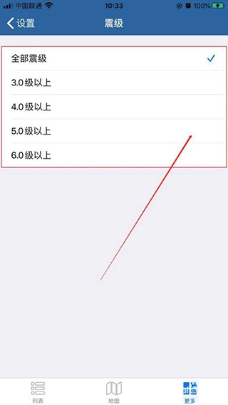在震级筛选的列表页面,勾选全震级选项或者设定具体的震级下限数值就行。