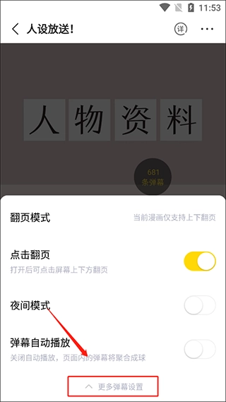 在弹出的菜单界面,点击选择“更多弹幕设置”。