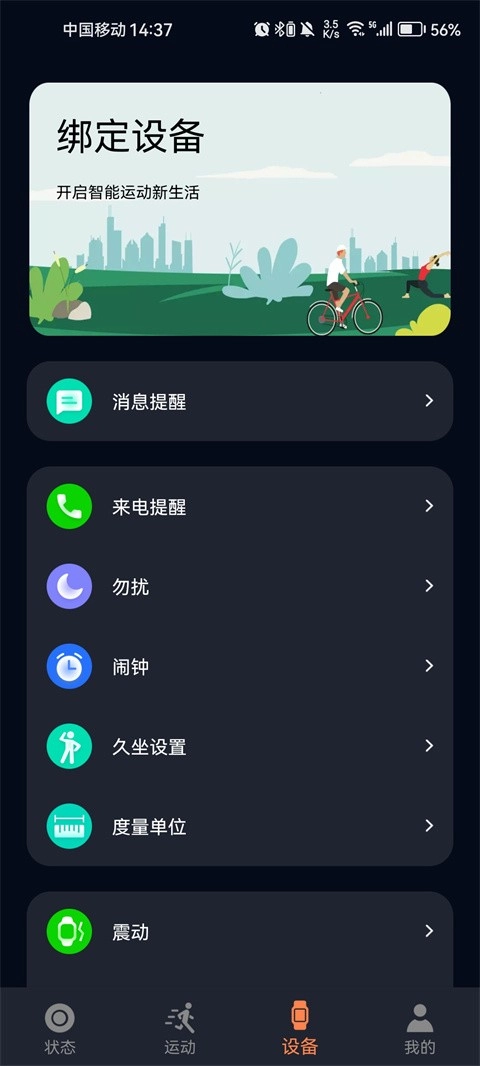 在应用的“设备管理”界面中,找到“添加设备”的功能选项,接着按照页面提示的步骤完成设备绑定操作就可以了。