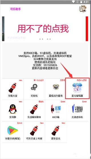 支持X8沙箱、51虚拟机、光速虚拟机、VMOS等多种免root框架应用使用,同时也涵盖真机root,全方位满足大家的需求。