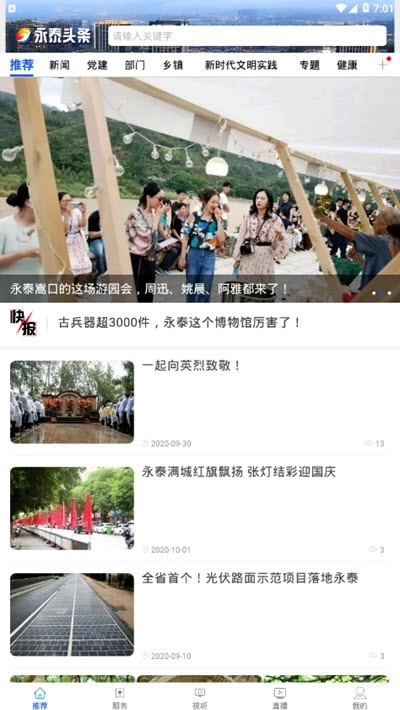 1、永泰头条是专门面向永泰县打造的平台,涵盖了新闻资讯、生活服务、视听内容、直播互动等多种功能板块;