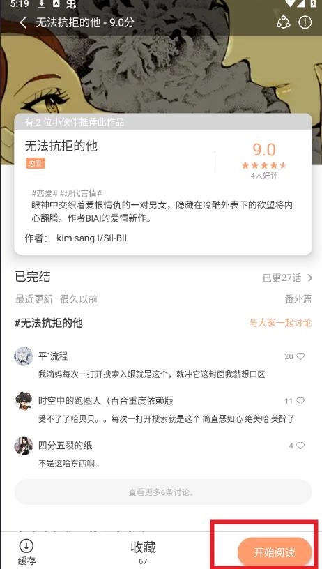 找到喜欢的漫画后,直接点击进入,然后点击开始阅读就可以了。