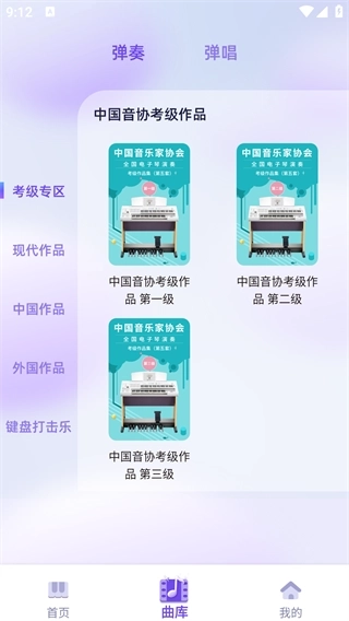 3、点击下方的曲库按钮切换至该板块,这里提供了针对不同考试需求打造的专属曲库内容。