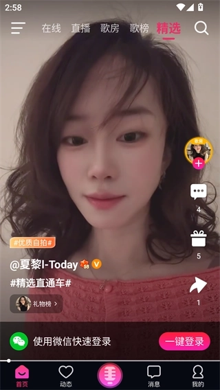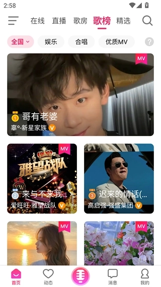 2、首页会推送一些热门的唱歌短视频,滑动屏幕就能切换。