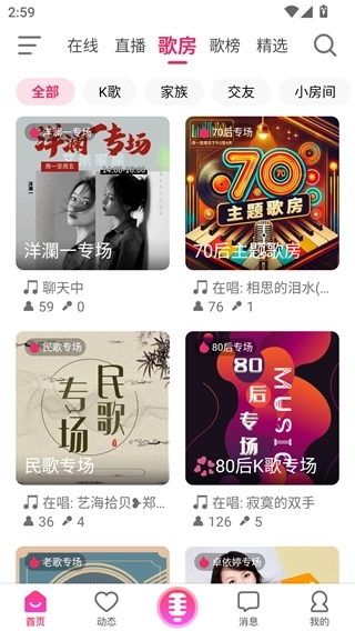 4、在歌房板块中,你能够加入其他用户创建的K歌房间,与大家一同畅快地唱歌。