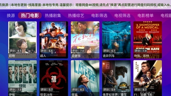 1、完成安装并进入首页后,能看到丰富的影视分类,点击“换源”按钮,即可随时获取可用的播放资源。