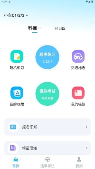 2、科目一与科目四专项练习,依据不同考试侧重点,配备专属练习模式,助力复习更具针对性。
