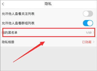 随后点击【我的黑名单】,查看已拉黑的用户列表;