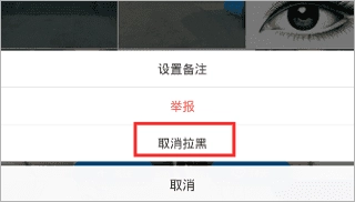 从弹出的选项中选择【取消拉黑】即可完成操作。