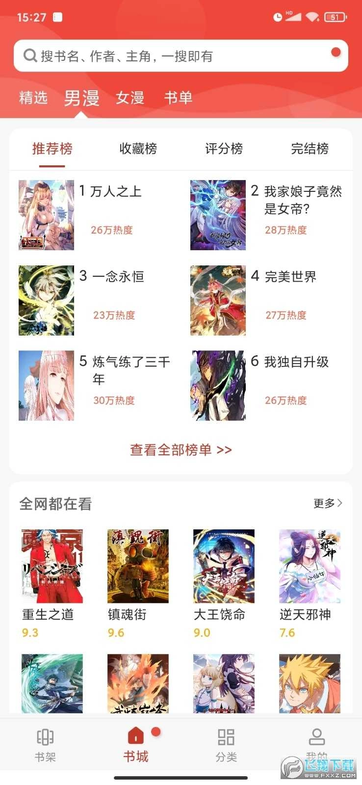 4、进入书城页面,可浏览各类热门推荐内容;