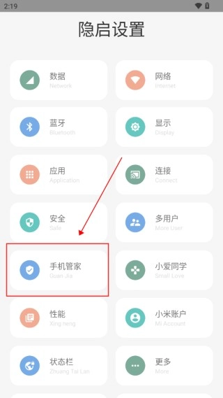 1、点击“手机管家”板块。