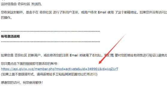 接下来我们打开刚才注册时填写的邮箱,在里面你会收到奇异社区发送的注册验证邮件。