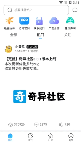奇异社区最新版是一款为爱好者量身打造的综合性互动平台,整合了游戏资源、玩家交流与实用工具等功能。平台汇集了海量热门游戏模组、辅助工具以及详尽的攻略内容,能够满足不同阶段玩家的需求——不管你是刚接触游戏的新手,还是热衷于深度玩法的老玩家,都能在这里找到属于自己的乐趣天地。马上体验,开启你的专属游戏之旅!
