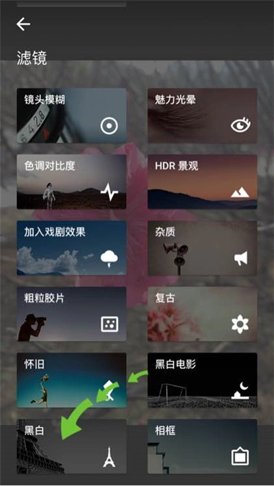 2、挑选你喜欢的黑白风格预设,确认后点击右下角的对勾完成应用。