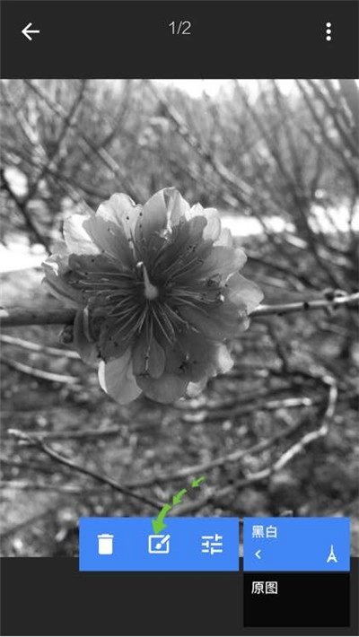 3、点击屏幕右上角显示的操作步骤编号“1”,进入图层对比模式,选择“黑白”图层使其进入可编辑状态。