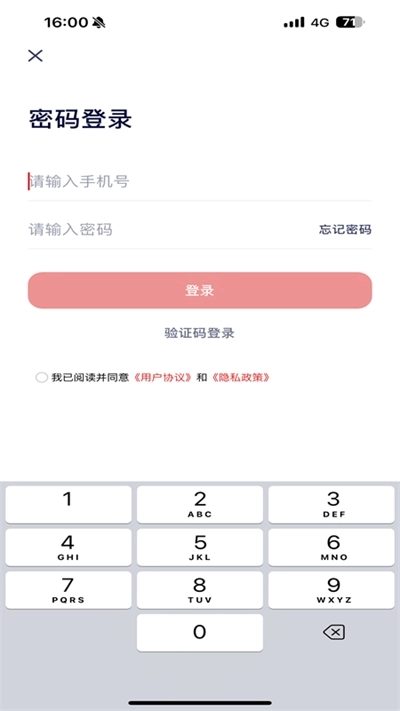 4、已有账号的朋友可点击密码登录选项,输入对应的手机号与密码就能完成登录操作。