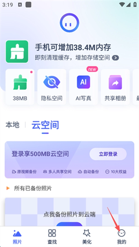 一键将照片备份到云端,既能释放手机存储空间,又能防止照片丢失。
