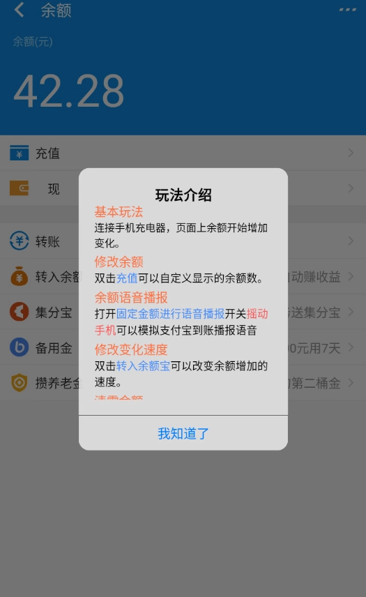 3、接着你就能看到虚拟的支付宝余额图片,同时还能听到支付宝到账的语音播报。