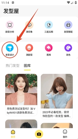 1、进入软件之后,在首页找到“发型设计”功能,点击进入。
