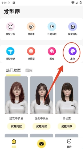 1、在软件首页找到“发色”,点击进入。