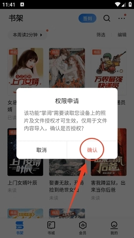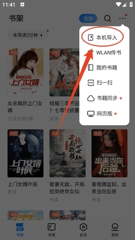 4、然后就可以将你要导入的本地小说导入到书架中了。