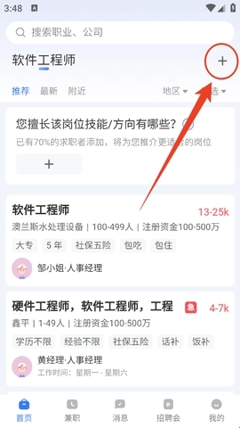 4、接着我们回到首页,能发现此刻推送的岗位与之前相比匹配度有所提升。