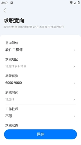 2、完善好资料后记得点击保存,如此一来系统推送的职位匹配度会更高。