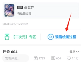 在作品详情页中作品的下方或相关选项中,找到“查看绘画过程”按钮。