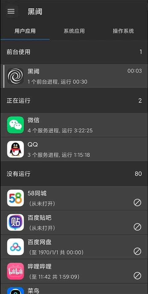 无论何时应用被运行,只要没有打开界面,黑域最新版都将强行停止它。