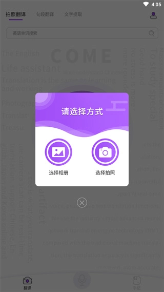 2、【拍照翻译】使用照片或者扫描照片拍照等直接对文字进行翻译,支持翻译互转,如支持中文翻译英文、中文翻译日语、中文翻译德语等;