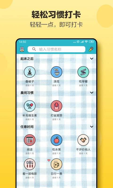 4、添加习惯:自定义添加自己想养成的好习惯;