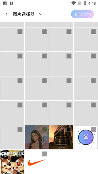 2、点击漫画脸进入图片选择页面,选择自己需要修改的图片后,点击下一步。