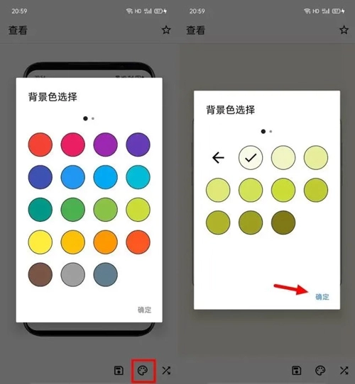 4、Snapmod具备自定义背景设置功能,点击右下角从左数第二个图标,即可对带壳截图的背景颜色进行自定义设置。