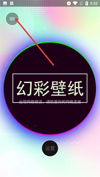若进入【幻彩壁纸】页面时出现网络错误提示,可点击左上角的菜单按钮,也能通过底部的【设置】选项来检查网络连接状态。